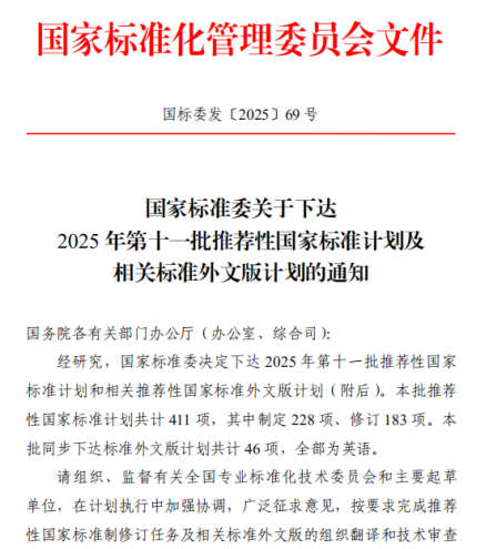 2025年12月3日,国家标准化管理委员会发布《关于下达2025年第十一批推荐性国家标准计划及相关标准外文版计划的通知》(国标委发〔2025〕69号),其中下达了一项物流领域国家标准项目计划。