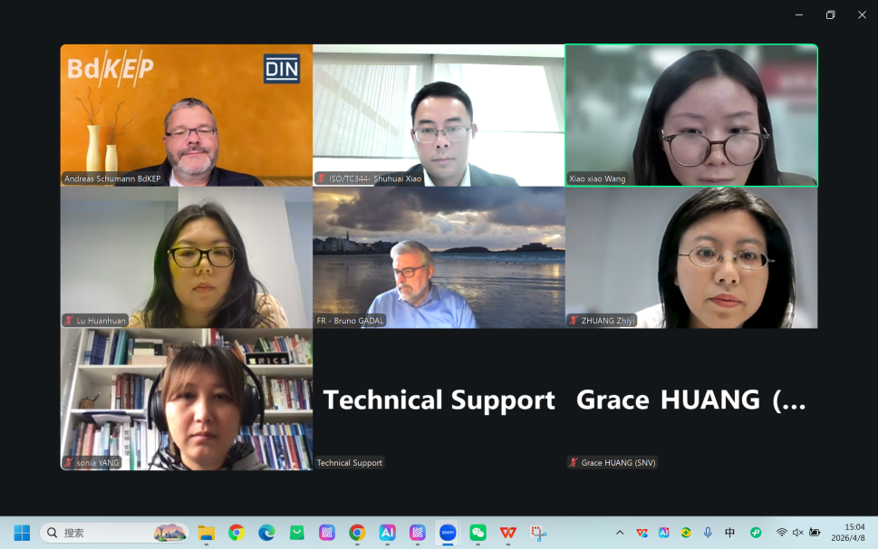 2026年4月7日—8日,国际标准化组织创新物流技术委员会(ISO/TC 344)仓储工作组(WG3)、物流绩效工作组(WG4)第一次会议通过线上形式召开。来自中国、瑞士、法国、德国等国家的专家代表参会。